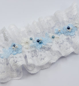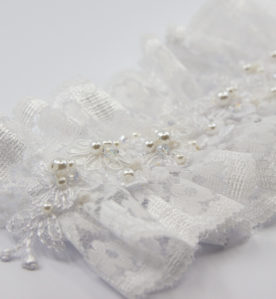 990 KčKlasický krajkový svatební podvazek vyšívaný kytičkami, broušenými korálky a perličkami.