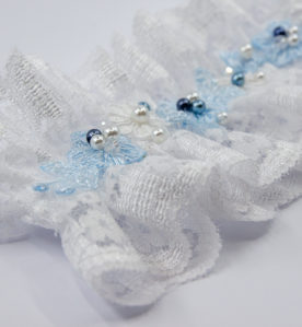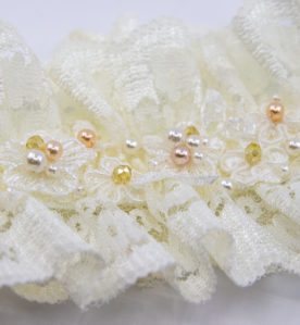990 KčTylový svatební podvazek po celém obvodu vyšívaný českými korálky PRECIOSA dozdobený krajkovými kytičkami.