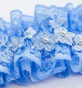 TYLOVÝ SVATEBNÍ PODVAZEK S BROŽÍ – modrý