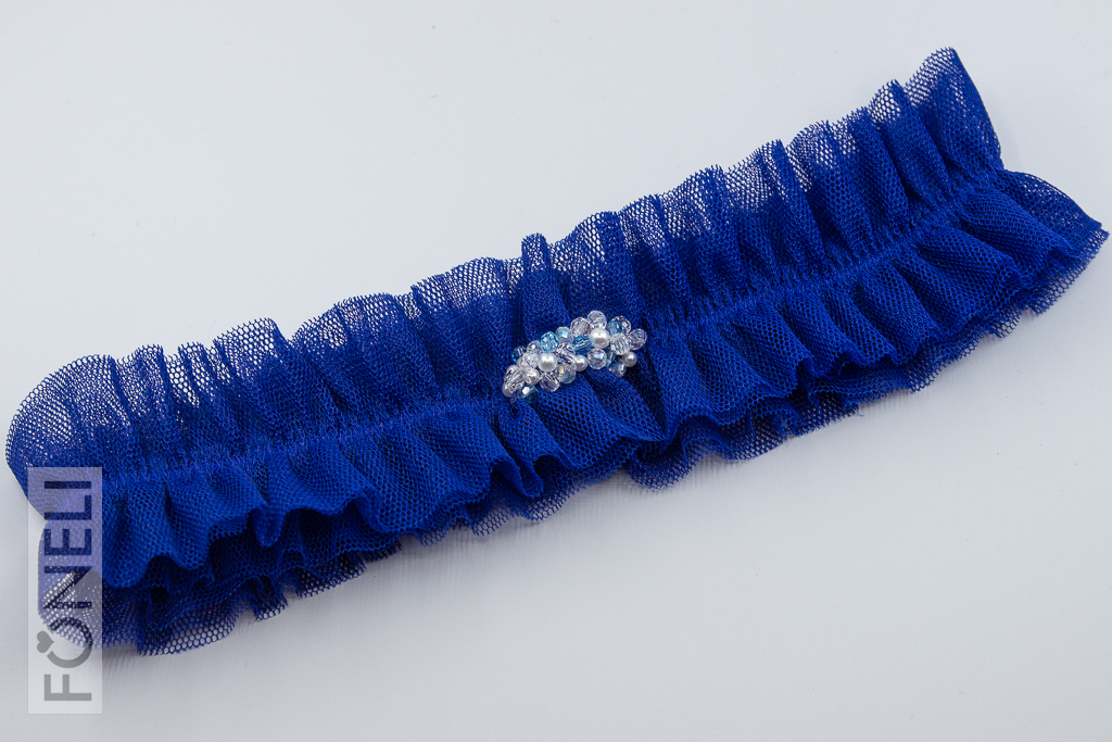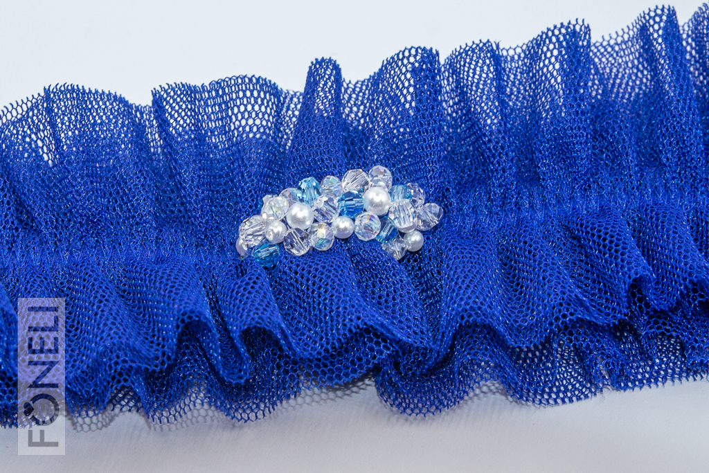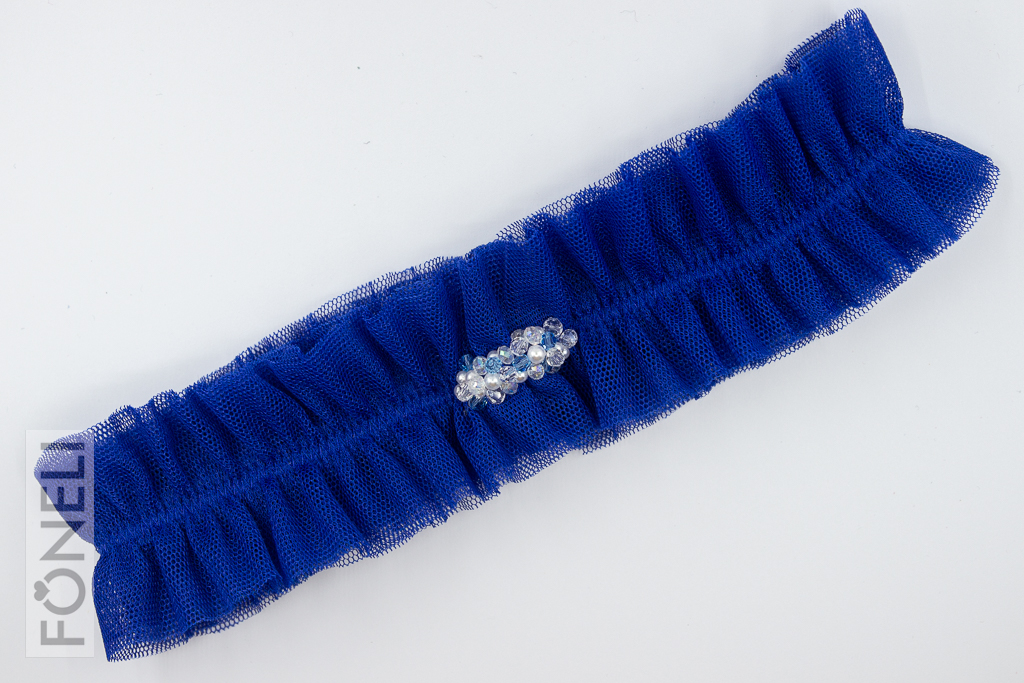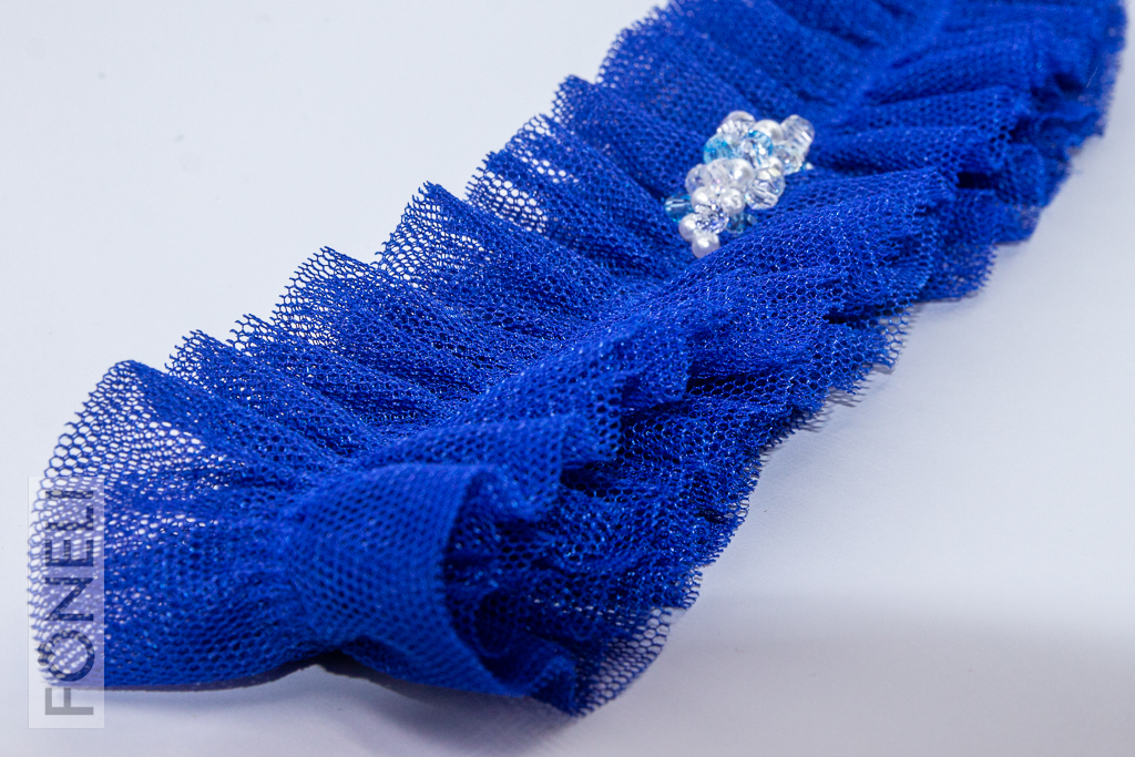 Tento tylový model patří mezi klasické svatební podvazky. Ve středu podvazku jsou ručně vyšité broušené korálky a perličky. Podvazek je široký 4,5 cm.